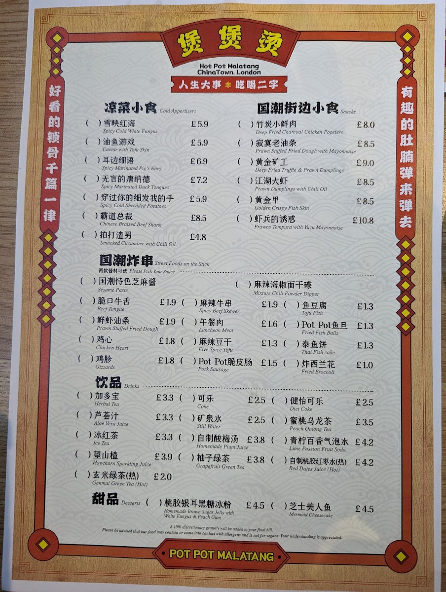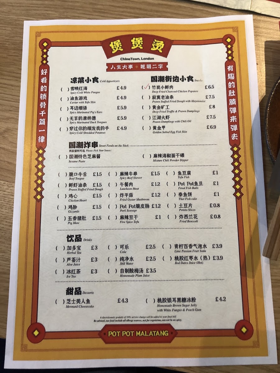 Welcome to Pot Pot Malatang, a culinary gem nestled in the heart of London’s Chinatown. Here, diners embark on a delightful journey through a diverse menu brimming with traditional flavors and innovative bites.